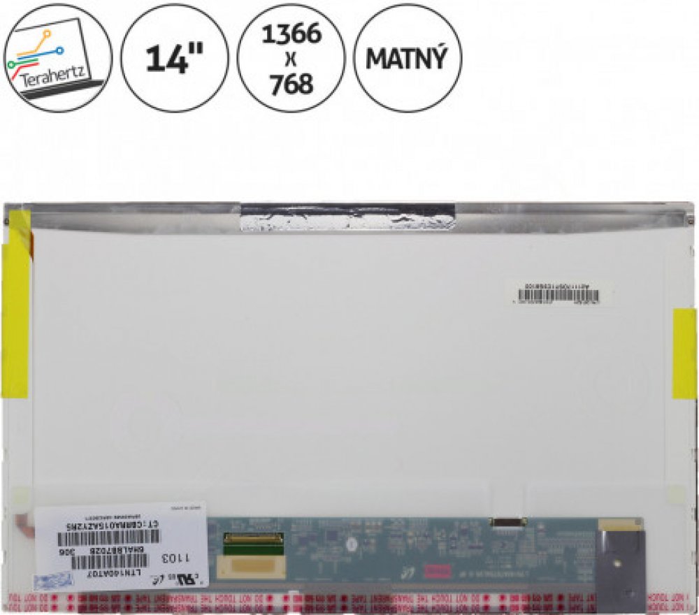 Konektor 40 pin konektor vlevo dole / Podsvícení LED / Povrch displeje matný / Rozlišení 1366 x 768 HD / Stav nový / Úhlopříčka 14