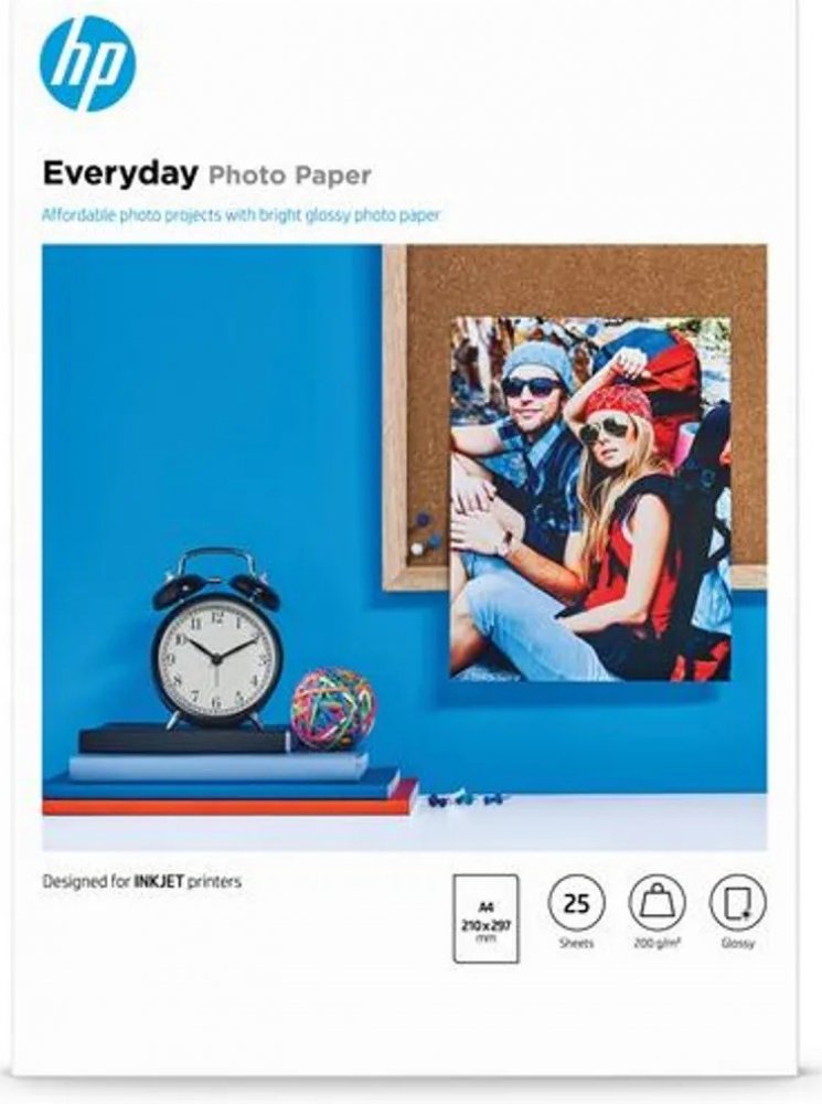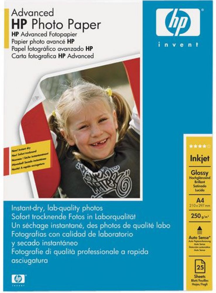 HP Advanced Glossy Photo Paper - Lesklý - A4 (210 x 297 mm) - 250 g/m2 - 25 listy fotografický papír - pro Officejet 80XX; Photosmart B110, Wireless B110; Smart Tank Plus 55X, 571, 655