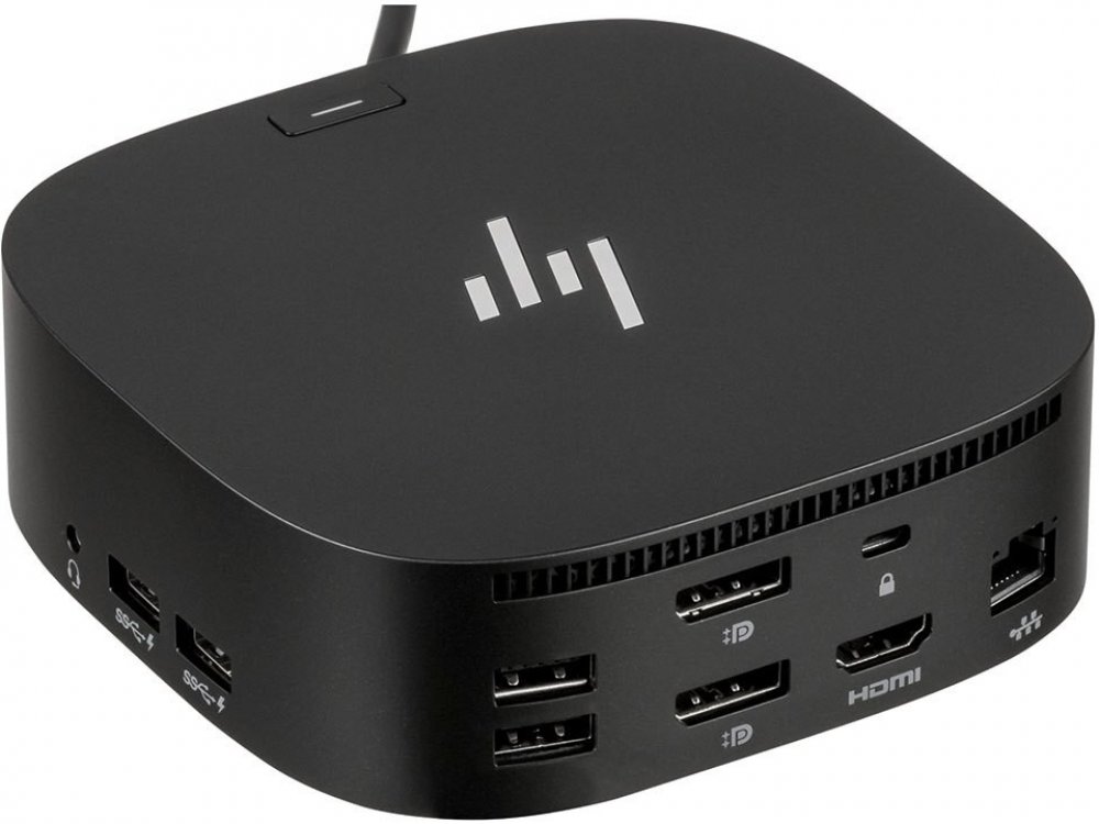 Připojte kabel dokovací stanice k portu USB-C a používejte kabelovou síť, připojujte se k externím monitorům a k příslušenství prostřednictvím dvou portů DisplayPort, HDMI, RJ-45 a pěti portů USB (4x USB 3.0, 1x USB-C).