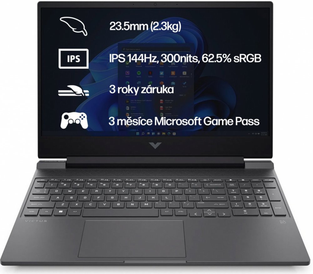 HP Victus 15-fb3043nc; Základem notebooku je osmijádrový procesor AMD Ryzen 7 8845HS , pracující na frekvenci 3,8 GHz, doplněný o 16 GB operační paměti. Vybaven je 15,6" matným displejem s Full HD rozlišením 1920 × 1080 bodů a obnovovací frekvencí 144...
