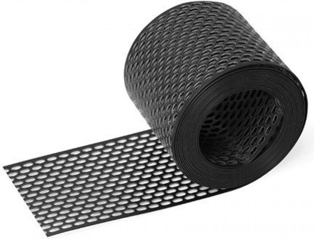 Oboustranně lakovaný hliníkový perforovaný okapní větrací pás, zamezující přístup ptákům pod střešní krytinu. Natlouká se nebo přisponkuje na přední stranu spodní latě a kontralatě. Barva na jedné straně černá, na druhé straně bílá. Délka role 5 m, šíře pásu 10 cm.
