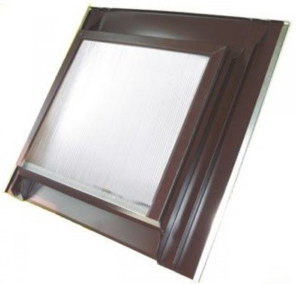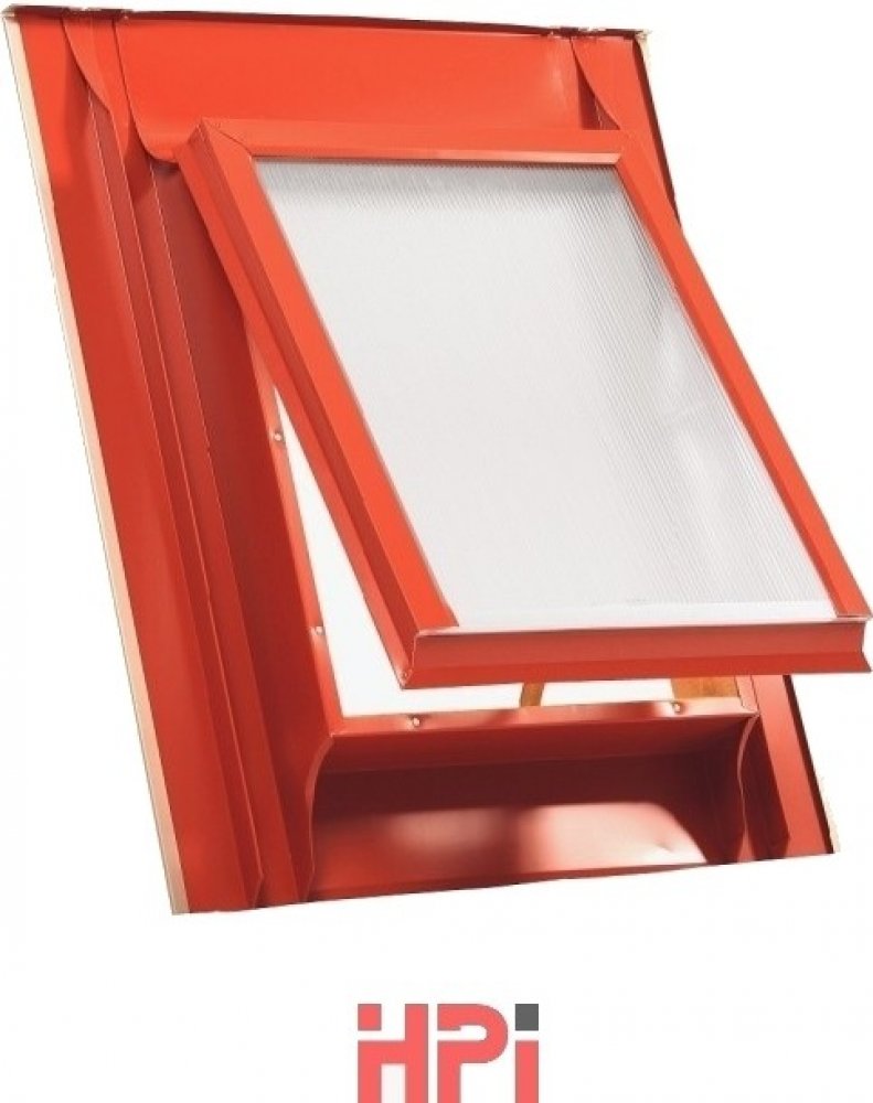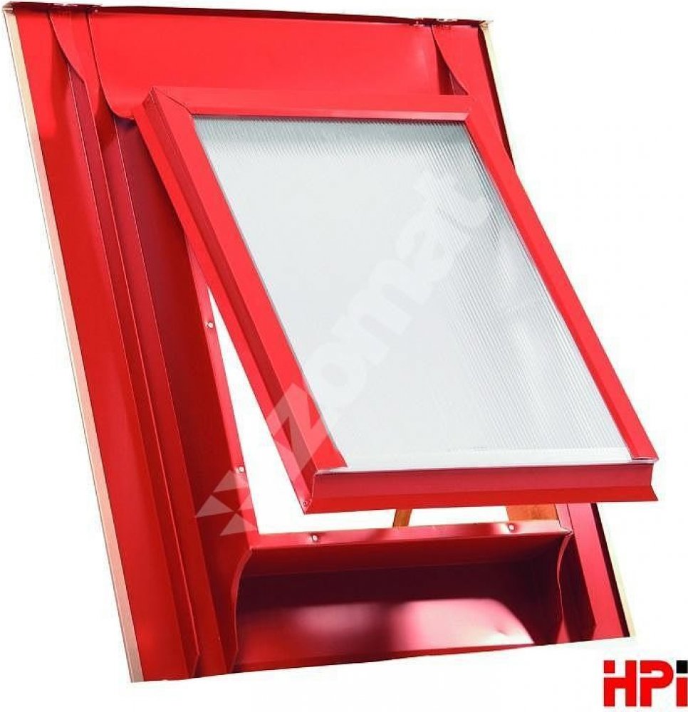 Univerzální výlezové okno pro bezpečný výlez na střechu při revizi komínu či úpravě některých částí na střeše. Okno je pro nízké střešní krytiny typu betternit, šindelm, bobrovka. Použitý materiál je hliníkový plech opatřen barevným nástřikem, výplň je tvořena polykarbonátem s uv filtrem, okno má variabilní kování pro úplné uzavření nebo režim větrání. Vnitřní rozměr je 445 x 545 mm.