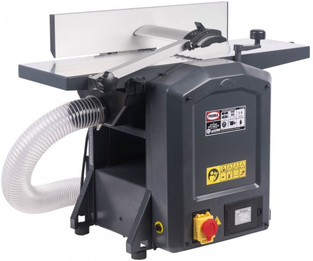 Hoblovka s protahem a odsávání PROMA HPO-200/210 Hoblovka s protahem - protahovačkou PROMA HPO-200/210 překvapí kapacitou protahu 204 x 210 mm a s integrovaným odsáváním je kompaktním modelem vhodný pro domácí kutily.Hlavní výhodyTato hoblovka (srovnávací a tloušťkovací frézka) včetně integrovaného odsávání třísek je určena k obrábění měkkého i tvrdého dřeva Vhodná je zejména pro domácí a kutilské práce Kvalitní a precizně obrobené hliníkové stoly zajišťují přesný výsledek hoblování Výhodou je šíře hoblování 204 mm a použití protahu o výšce až 210 mm se strojním posuvem Hoblovky jsou standardně vybaveny naklápěcím vodicím pravítkem (sklopné v úhlu 90° - 45°) a integrovaným odsáváním třísek Rychlé a jednoduché nastavení požadovaného úběru materiálu Součástí dodávky je integrované odsávání a pytel na třísky Uzamykatelný vypínač IP 54 s podpěťovým spouštěčem Přesně uložený 2-nožový hřídel s hoblovacími noži HSS Ochrana nožového válce dle normy CE poskytuje při práci nejvyšší bezpečnost Hnací motor s vysokým točivým momentem zajišťuje optimální výsledky hoblování Součástí dodávky je kryt odsávání protahuSoučásti dodávky Hoblovky s protahem PROMA HPO-200/210Vodicí pravítko Integrované odsávání třísek s pilinovým vakem Hoblovací nože v HSS kvalitě Kryt odsávání Seřizovací měrka hoblovacího nože Přípravek na posouvání dřevaPilinový vakObslužné nářadíNáhradní řemenNapětí230 VPříkon1500 WRozměry nože210 x 16,5 x 1,5 mmPočet nožů nožového válce2 ksPrůměr nožového válce50 mmOtáčky nožového válce8500 ot/min.Otáčky motoru22000 ot/min.Max. šířka protahu204 mmRozměry stolu protahu285 x 204 mmMax. výška protahovaného materiálu6 - 210 mmRychlost posuvu protahu7 m/min.Max. šíře hoblování210 mmRozměry hoblovacího stolu737 x 210 mmRozměry vodícího pravítka520 x 102 Průměr odsávání63 mm