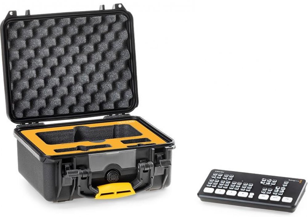 HPRC AME-2300-01 je pevný přepravní kufry specificky vytvořený pro bezpečné přenášení a skladování režií Blackmagic Design ATEM Mini/ATEM Mini Pro/ATEM Mini Pro ISO a dalšího příslušenství (SSD disk, HDMI kabeláž, Blackmagic ATEM Streaming Bridge apod.). Lze převážet jako kabinové zavazadlo (vnější rozměry 335x289x155 mm, váha 1,90 kg). Kufr odolává nárazům, prachu i vodě.Do pěny se vejde ATEM Mini/Mini Pro/Mini Pro ISO, nabíječka, Angelbird SSD2GO, Blackmagic ATEM, Streaming Bridge, HDMI kabely a další.