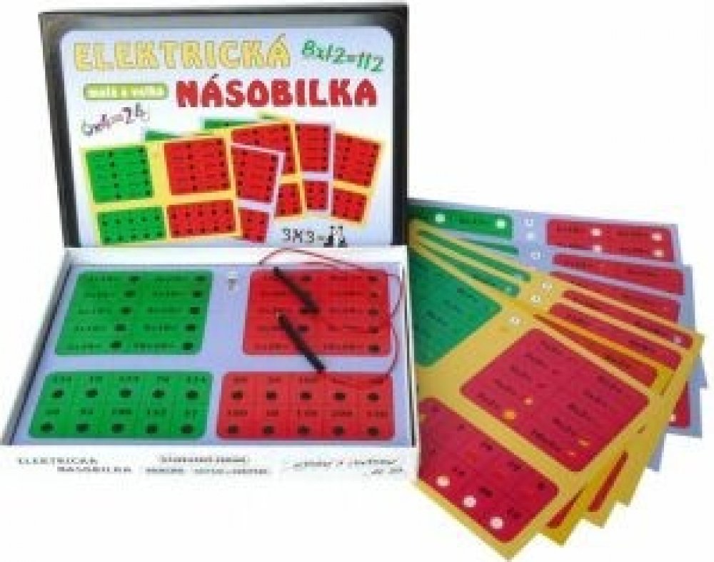Elektrická násobilka - společenská hra na baterie Elektrická násobilka je hra určená dětem od 7 let a obsahuje všech 200 příkladů malé i velké násobilky na 10 výměnných listech.