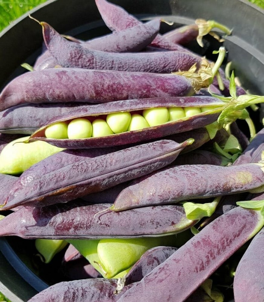 Hrách Desiree je unikátní odrůda s netypicky zbarvenými lusky, které obsahují středně velká a sladká zrna.