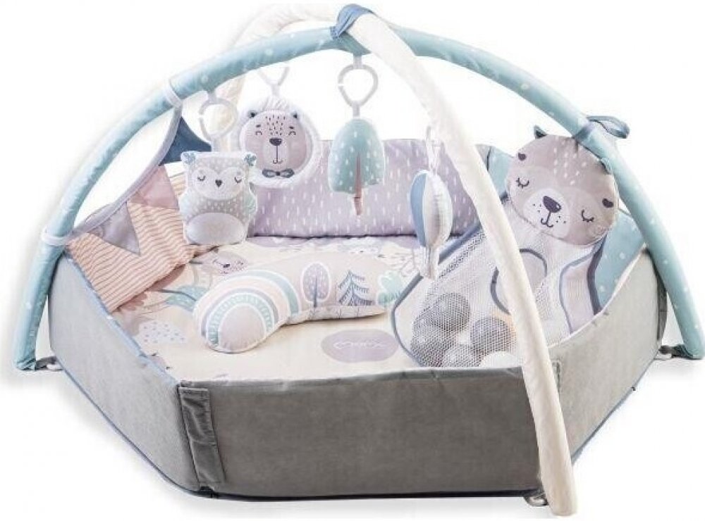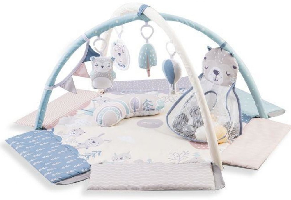 Součástí podložky je i polštářek ve tvaru croissantu, který vašemu děťátku pomůže s prvními pokusy o plazení. O pohodlí při hraní se postará příjemná tkanina, ze které je hrací deka vyrobená. Ta je opatřena termoizolační vrstvou a zajistí, aby vašemu drobečkovi nebylo chladno od podlahy.