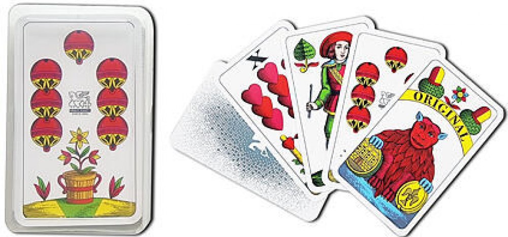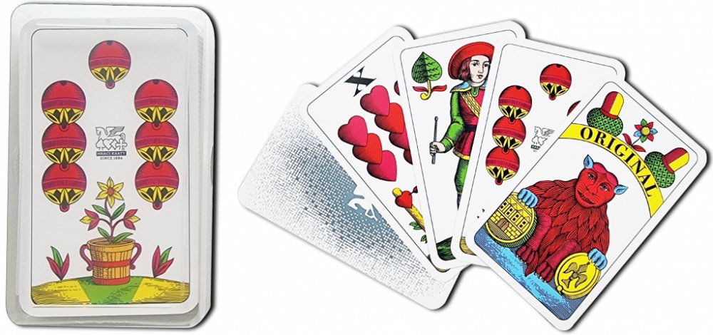 Tváří této hry je již 200 let žaludské eso s medvědem držícím dvě mince. Revers hry s bájným Pegasem je pro tuto hru charakteristický již více jak 50 let. Věnujte dědovi karbaníkovi skvělý dárek.