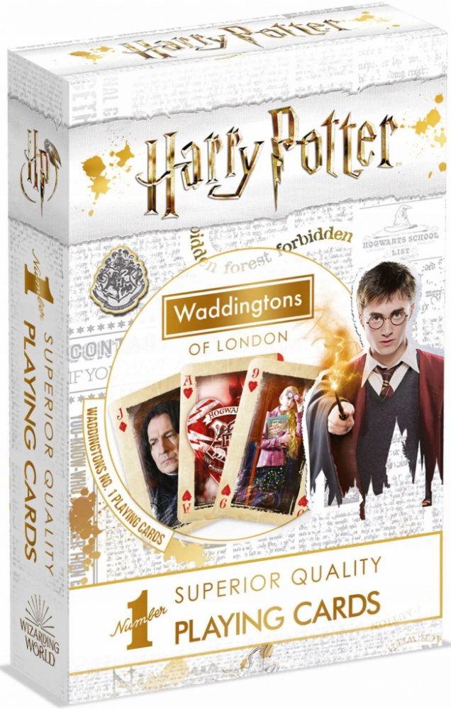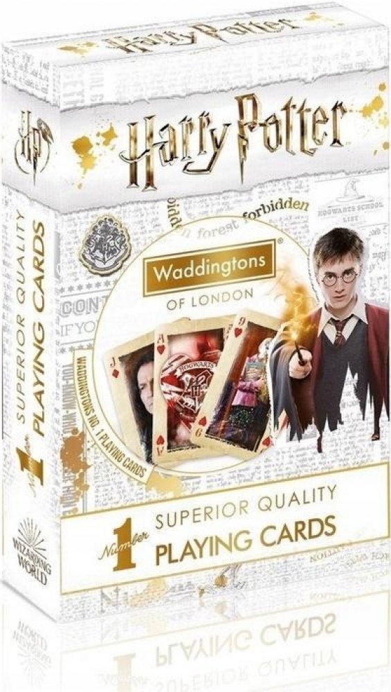 Sada hracích karet udělá radost všem fanouškům Harryho Pottera. Hrdinové z Bradavic se staly inspirací těchto originálních karet. Balíček obsahuje 52 karet se známými postavami a dvěma žolíky. Jedná se o oficiálně licencovaný produkt.