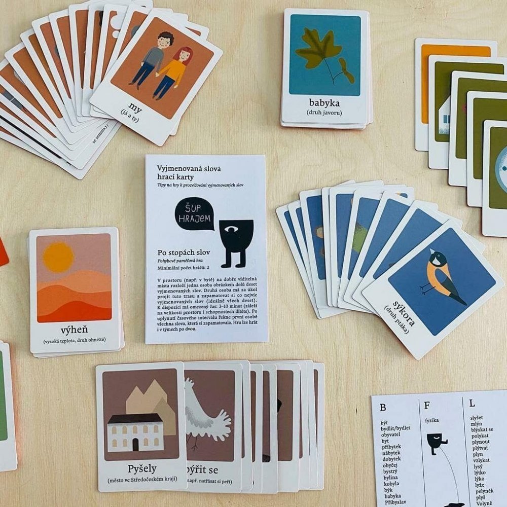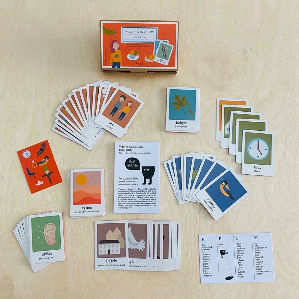 Vyjmenovaná slova se můžete naučit hravě, s těmito hracími kartami. Co karta, to ilustrované vyjmenované slovo. Celá sada obsahuje 86 karet a stručný návod na hraní pěti různých her, díky kterým si děcka slova postupně vštípí do paměti. A to nejen slova vyjmenovaná, ale i jim příbuzná.