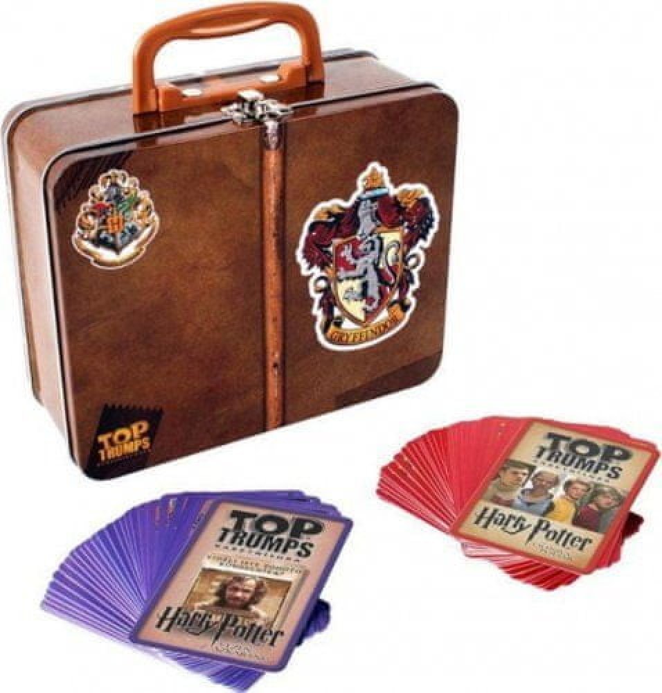 Hru může hrát libovolný počet lidí, nejméně však dva. Top Trumps Battle má více verzí a často je dodáván s oblíbenými licencemi. Vezměte si Bradavický expres s kovovým nebelvírským kufrem. Tato exkluzivní edice obsahuje dva balíčky karet Top Trumps: Harry Potter a Ohnivý pohár a Harry Potter a vězeň z Azkabanu ve sběratelském plechu.