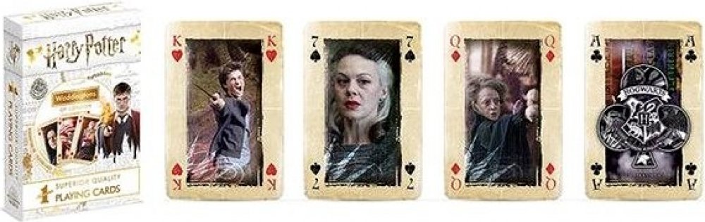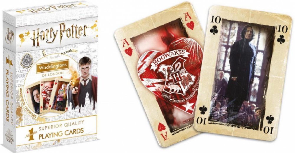 Hrací karty s motivem z filmů Harry Potter potěší každého fanouška této kouzelnické série! Zahrajte si s nimi třeba oblíbené karetní hry, jako je hra Kent nebo si vyložte pasiáns. Na krásné obrázky se nebudete moci vynadívat! Balení obsahuje 55 karet. Karty mají povrchovou úpravu. Rozměr balení cc 9,5 x 6 x 2 cm. Věk 6+ Popis předmětu: Waddingtonovy karty Harryho Pottera 2019Tento klasický balíček...