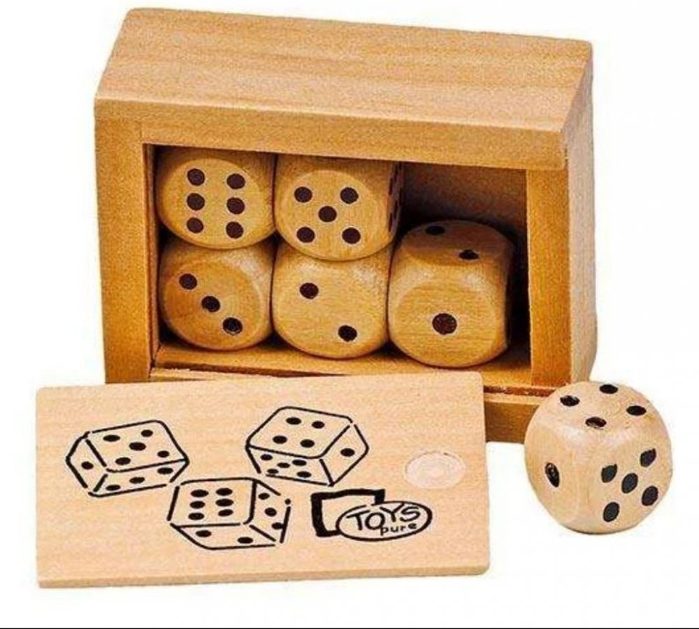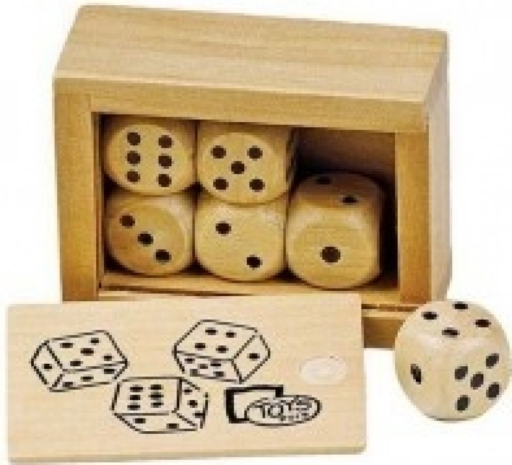 Hrací kostky v dřevěné krabičce