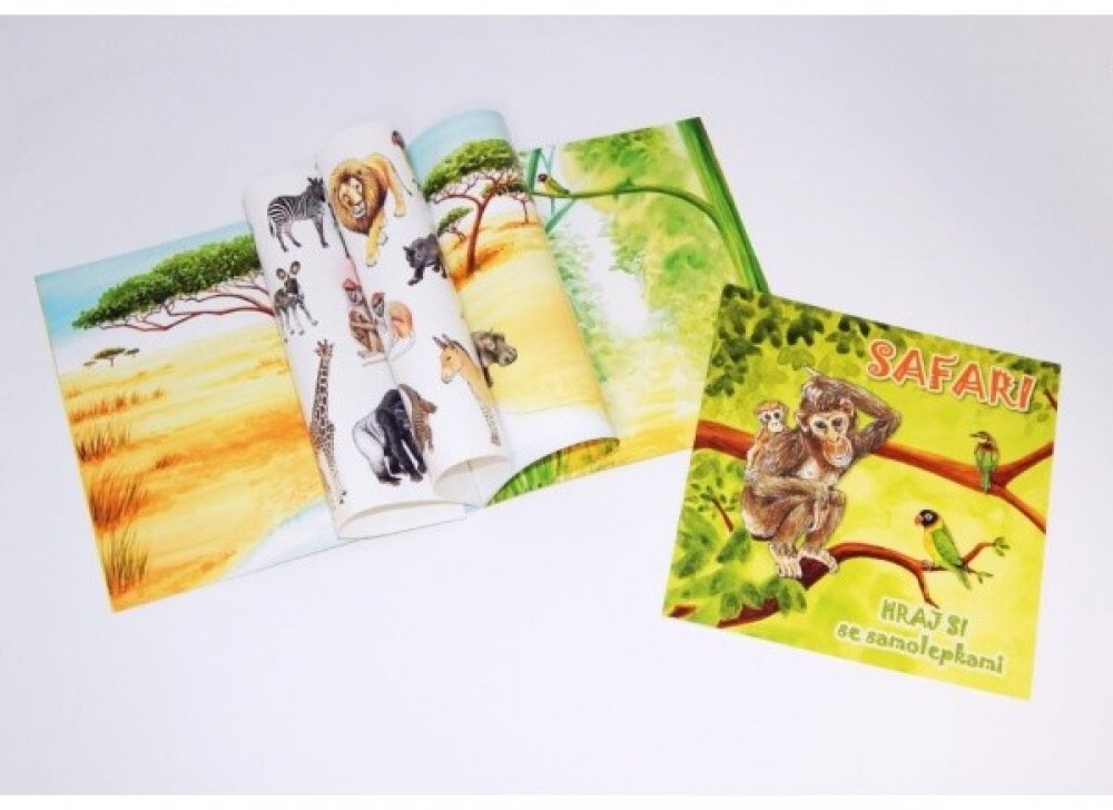 Zábavný samolepkový sešit Hraj si se samolepkami, s motivem Safari zvířátek.