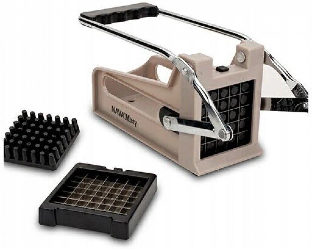 Kráječ „Misty“ značky NAVA je ideálním nástrojem pro krájení brambor na hranolky a přípravu zeleninových sloupků. Vyrobena z odolného plastu s čepelemi z z nerezové oceli, nabízí pohodlí díky ergonomickému úchopu. Výrobek má dvě vyměnitelné čepele, což umožňuje výběr různých tlouštěk řezu. Snadno se čistí a je bezpečná v myčce nádobí.