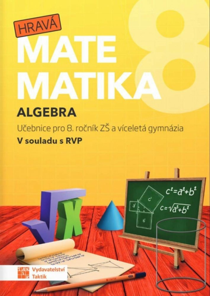 Učebnice pro ZŠ a víceletá gymnázia. Učebnice je moderně a přehledně zpracována a je určena nejen pro společnou výuku matematiky ve škole, ale také pro individuální domácí přípravu. Na zajímavých úlohách z reálných situací si žáci vyzkouší aplikaci matematiky v různých oblastech života. Publikace byla sestavena zkušenými pedagogy z praxe ve spolupráci s předními českými didaktiky pedagogických fakult. Učebnice obsahuje kapitoly: Opakování učiva 7. ročníku Mocniny a odmocniny Výrazy Lineární rovnice Základy statistiky a pravděpodobnosti