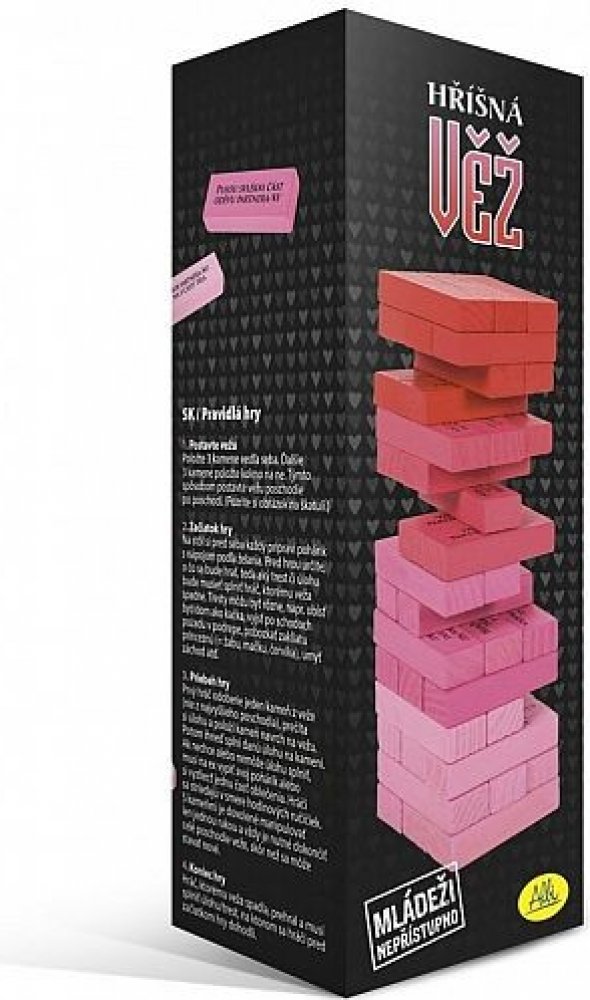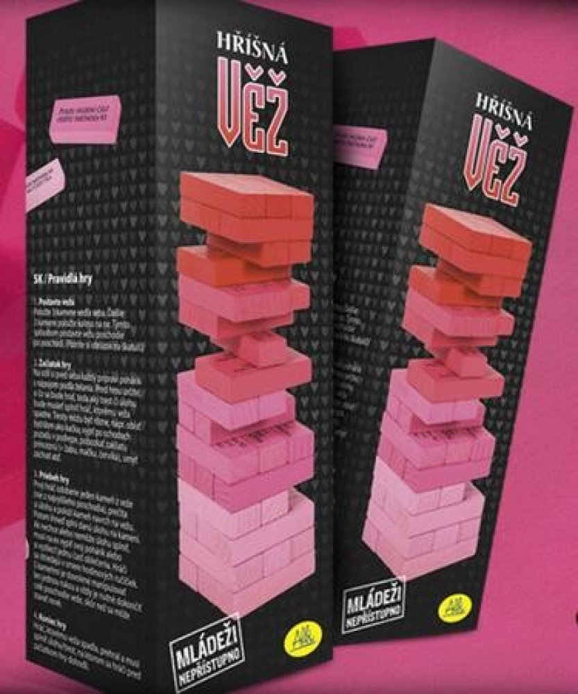 Odeberte dřevěný kámen z hříšného poschodí jenga, přečtěte si úkol a položte kámen nahoru na jengu. Pokud úkol nesplníte, nebo nechcete splnit odložte si jednu část oblečení. Poté je na řadě druhý hráč. Komu jenga spadne hra končí a prohraný bude muset provést speciální úkol, na kterém se před začátkem hry dohodnete. Je povoleno s kameny manipulovat pouze jednou rukou a vždy je nutné dokončit cel...