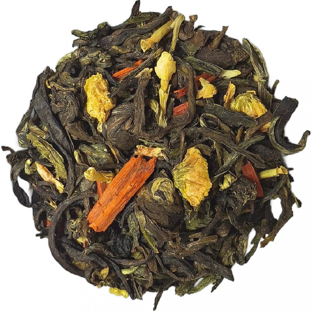 Tento čaj spojuje několik druhů vzácných čajů a aromatických přísad: