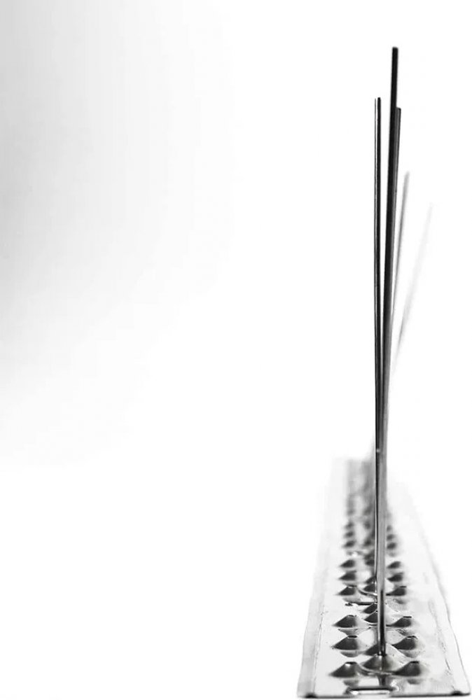 Celonerezové jednoradé hroty proti holubům SS1 poskytují spolehlivou ochranu úzkých říms a zábradlí před holuby a většími ptáky. Vyrobené kompletně z nerezové oceli pro dlouhou životnost v exteriéru. Jednoduchá montáž lepidlem, šrouby nebo stahovacími páskami.