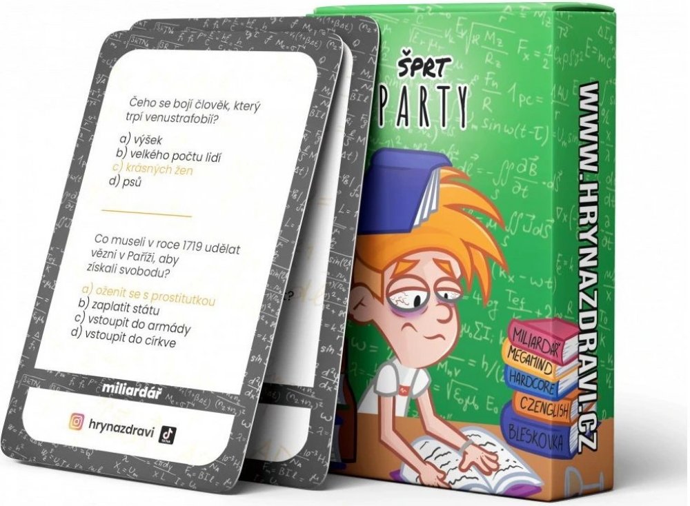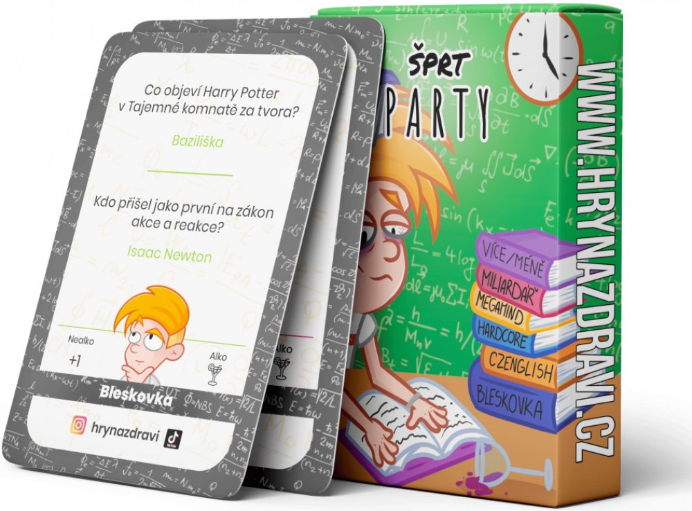 Princip hry: Moderátor ti položí otázku z karty. Pokud odpovíš špatně, musíš se napít či nezískáváš bod.