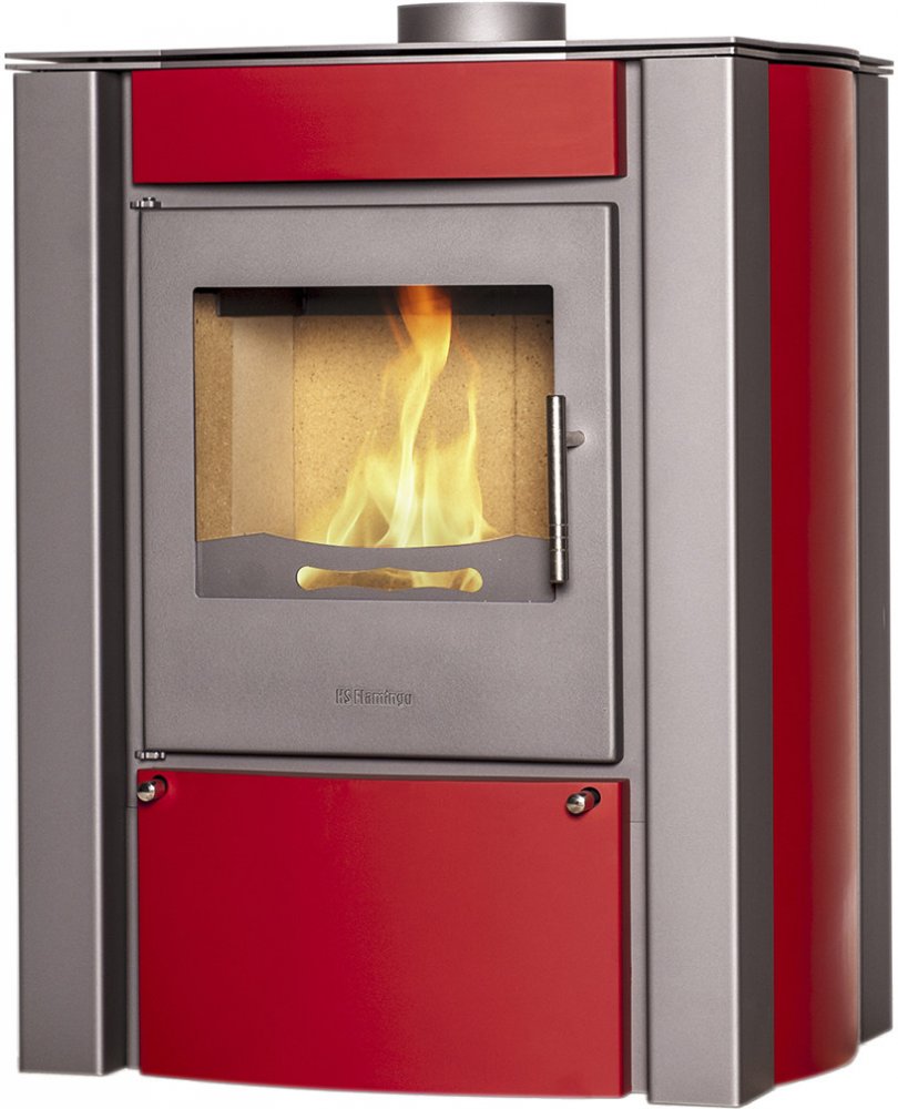 HS Flamingo 9 kW 240 m3 150 mm tuhá paliva 145 kg 86 cm 69 cm 35 cm 49 cm plechová 2.2 kg/h 80.72 % červená horní červená