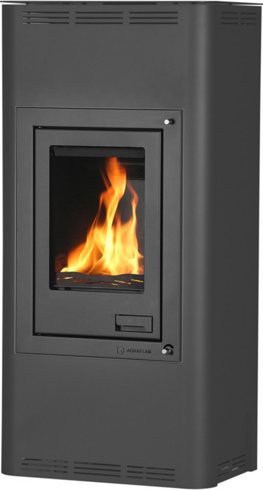 Aquaflam 12 s výměníkem, automatická regulace, HS Flamingo - Teplovodní ocelová dvouplášťová konvekční kamna s teplovodním výměníkem. Kamna mají automatickou regulaci externího přívodu vzduchu pomocí plně automatizované klapky, která je ovládaná řídící jednotkou na zdi.