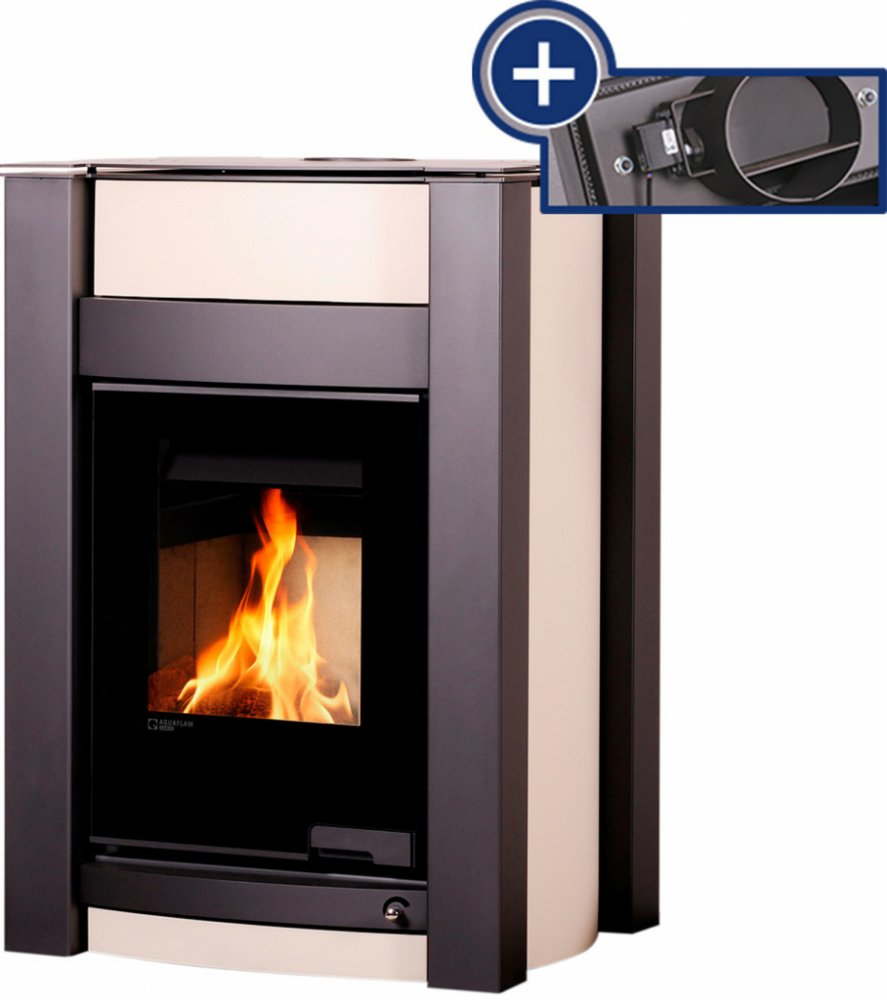 Manuální regulace spalovacího vzduchu jedním ovládacím prvkem v pravém dolním rohu krbových kamen. Možnost volby teplovodního nebo teplovzdušného provozu (pro teplovzdušný provoz je nutné vyměnit výměník za záslepku)