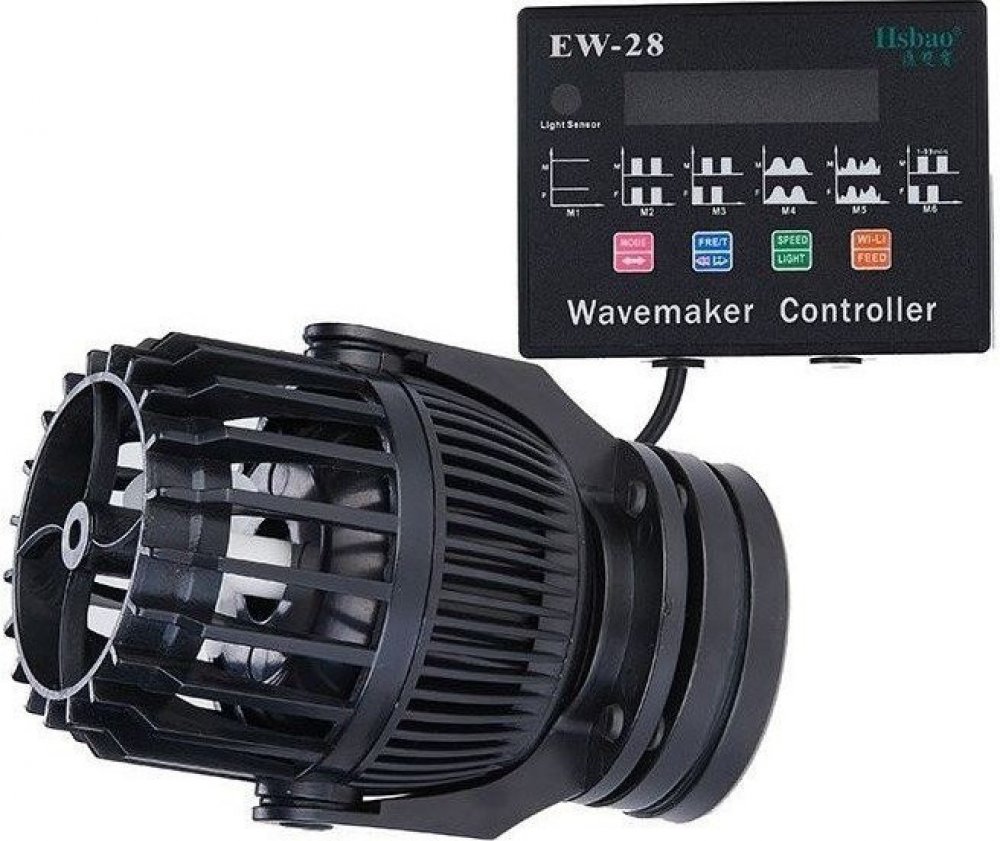 Správná cirkulace vody v nádrži je nejdůležitější prvek, který je potřeba zajistit.nedostatečné proudění vody může způsobovat, že se dodávaná hnojiva nedostanou ke všem rostlinám a můžou se zde objevit řasy a rostliny začínají chřadnout.toto čerpadlo je schopno věrně napodobovat podmínky z přírody díky velkému množství módů, které lze nastavit. Čerpadlo je možné nastavit na následující režimy:m1: režim streamingu - čerpadlo produkuje v tomto režimu konstantní proud vody.m2: režim vlna - čerpadlo/čerpadla pracují v souvislých přerušovaných intervalech, což vytváří vlny přímo ve vašem akváriu. Hýbe tak celým obsahem vody v akváriu.m3: režim vlna 2 - čerpadlo/čerpadla pracují v nepravidelných přerušovaných intervalech, což vytváří vlny přímo ve vašem akváriu. Hýbe tak celým obsahem vody v akváriu.m4: režim vlna 2 - výkon čerpadla/čerpadel se mění od 30 % do 100 % v sinusové vlně. Simuluje tak vznik příbojových vln.m5: náhodný režim - dochází k náhodným změnám v množství otáček.m6: individuální režim - uživatel lze nastavit individuální režim vln a výkon čerpadla. Všechna čerpadla jsou opatřena keramickou osou, takže jsou odolná proti slané mořské vodě.čerpadlo může pracovat v jednom z osmi režimů síly výkonu. Sílu proudu si tak můžete uzpůsobit speciálně pro vaší nádrž.čerpadlo je také vybaveno senzorem soumraku. Jakmile se přepne vaše osvětlení z denního na noční, čerpadlo to zaznamená a zeslabí svou sílu na noční mód. (vše si lze seřídit dle potřeby).užitečnou funkcí je i mód krmení. Čerpadlo se na deset minut vypne a samo následně zapne, aby se předešlo nepříjemnému zapomenutí.díky úchytům, které jsou řešeny pomocí magnetů, je čerpadlo velmi tiché a nedochází k žádným vibracím. Kontroléry čerpadel řady ew komunikují bezdrátově, díky tomu lze ovládat více čerpadel pomocí jednoho kontroléru.toto ovládání usnadňují instalaci a ovládání více zařízení čerpadel.firma hsbao pro výrobu čerpadel série ew využívá nejkvalitnější materiály a masivní robustnost zaručuje dlouhodobou životnost.čerpadlo je vybaveno silným magnetem, který umožňuje snadnou a pevnou montáž čerpadla na hranu akvária.specifikace:příkon: 23 wvýkon: 500 až 8000 l/hrozměry: 82 x 82 x 120 mm