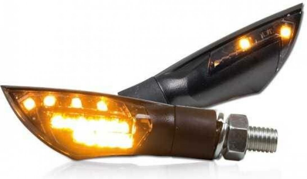 Detailní popis LED blinkry Dual na motorku, tónované sklo, černá, M8