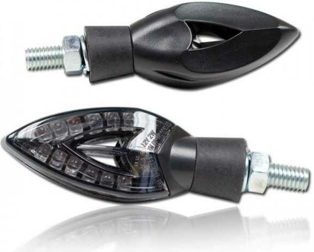 Detailní popis LED blinkry Punta na motorku, tónované sklo, černá, M8