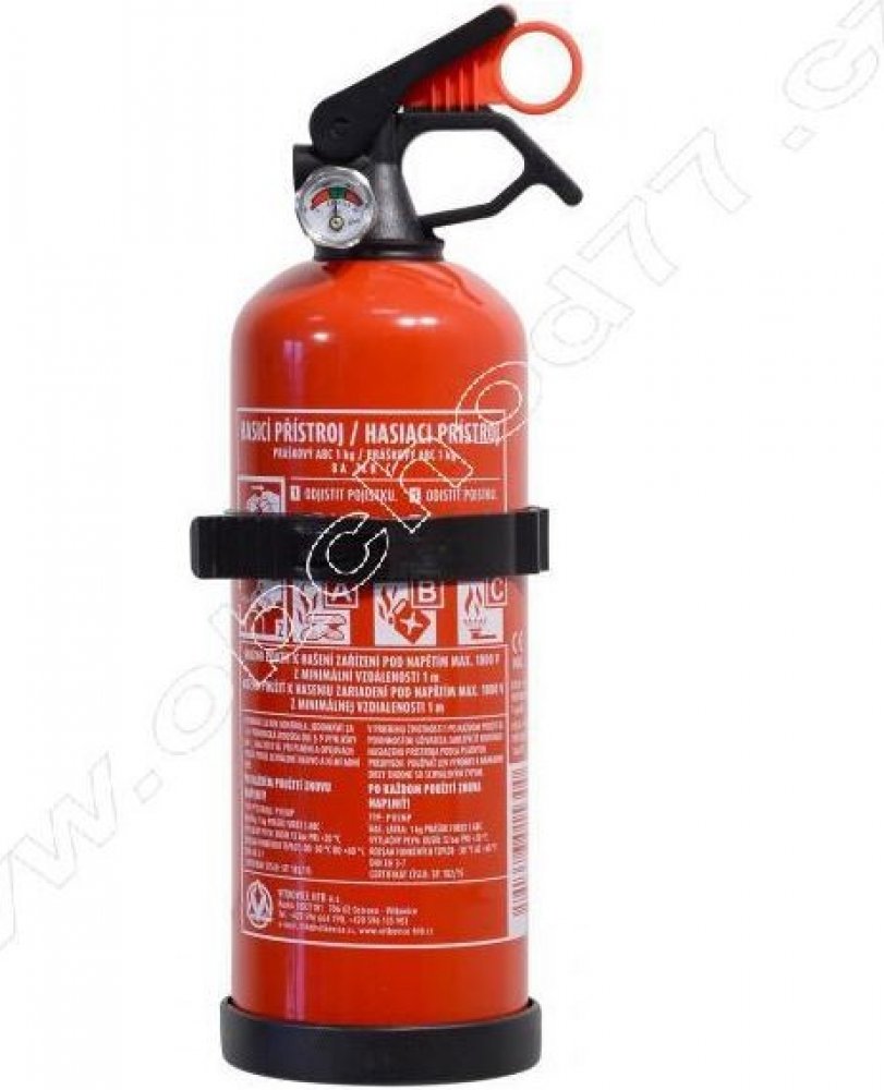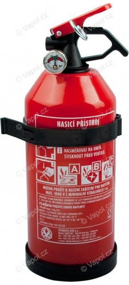 Množství hasicí náplně 1 kg, určeno k hašení požárů třídy A, B i C. Uplatnění najde v průmyslu, dopravě, veřejných prostorách, kancelářích i domácnostech.