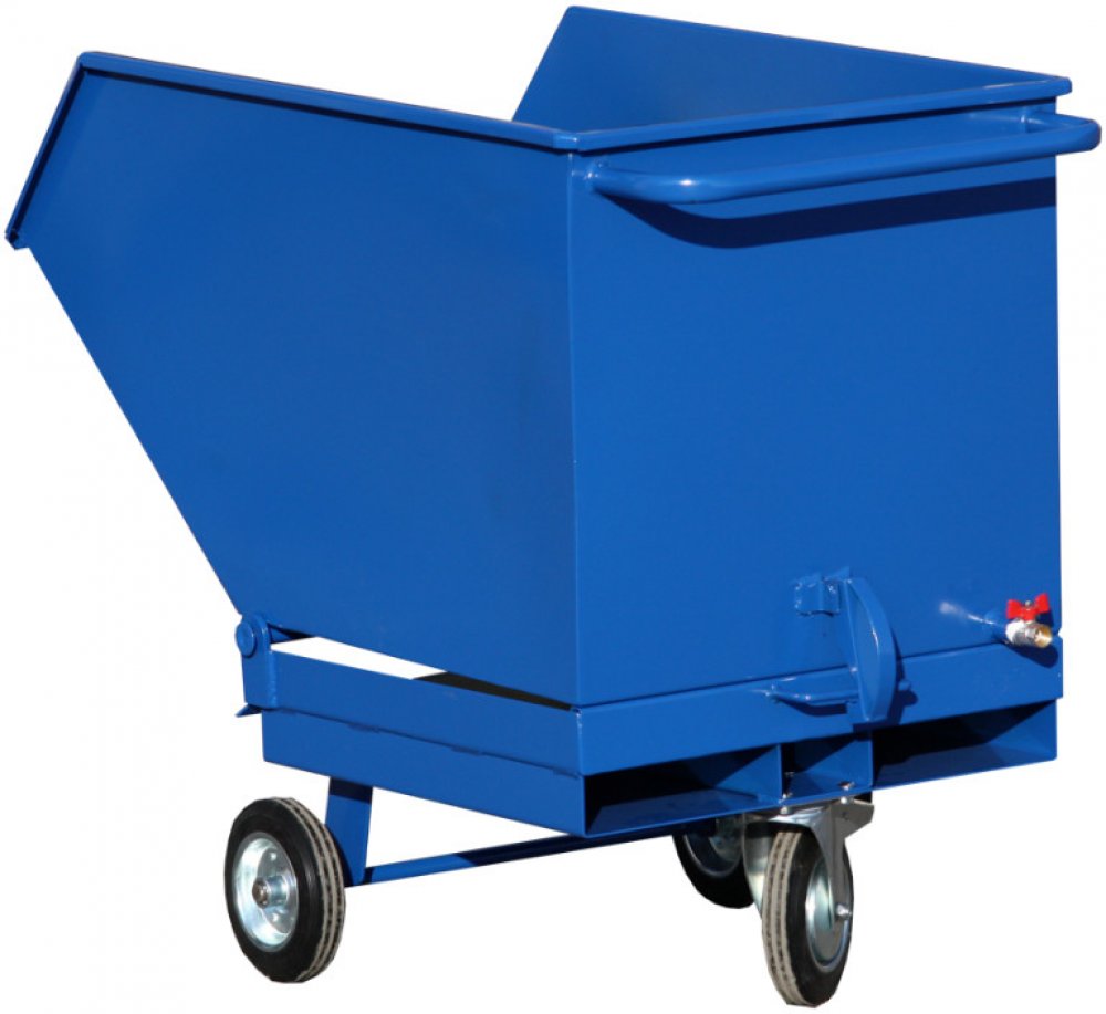 Vana nepropustně svařena z plechu tloušťky 2 mm se zesíleným okrajem po celém obvodu. Stabilní základový rám s vyklápěcím mechanismem, vyprazdňování se provádí na úrovni země. Manipulační trubkové madlo a kovové tažné oko. Podvozek je osazen třemi kladkami z plné černé pryže o pr. 200 mm a šířce 50 mm. Povrchová úprava práškovým lakem různých barev.