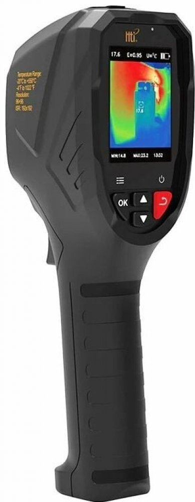 Hti H100 je ideální nástroj pro kontrolu tepelných úniků, studených mostů, netěsností oken, stav izolací, přehřívajících se součástek nebo elektrických rozvodů. Díky IR pásmu 8–14 µm a přesnosti ±2 °C nebo ±2 % poskytuje spolehlivé měření.