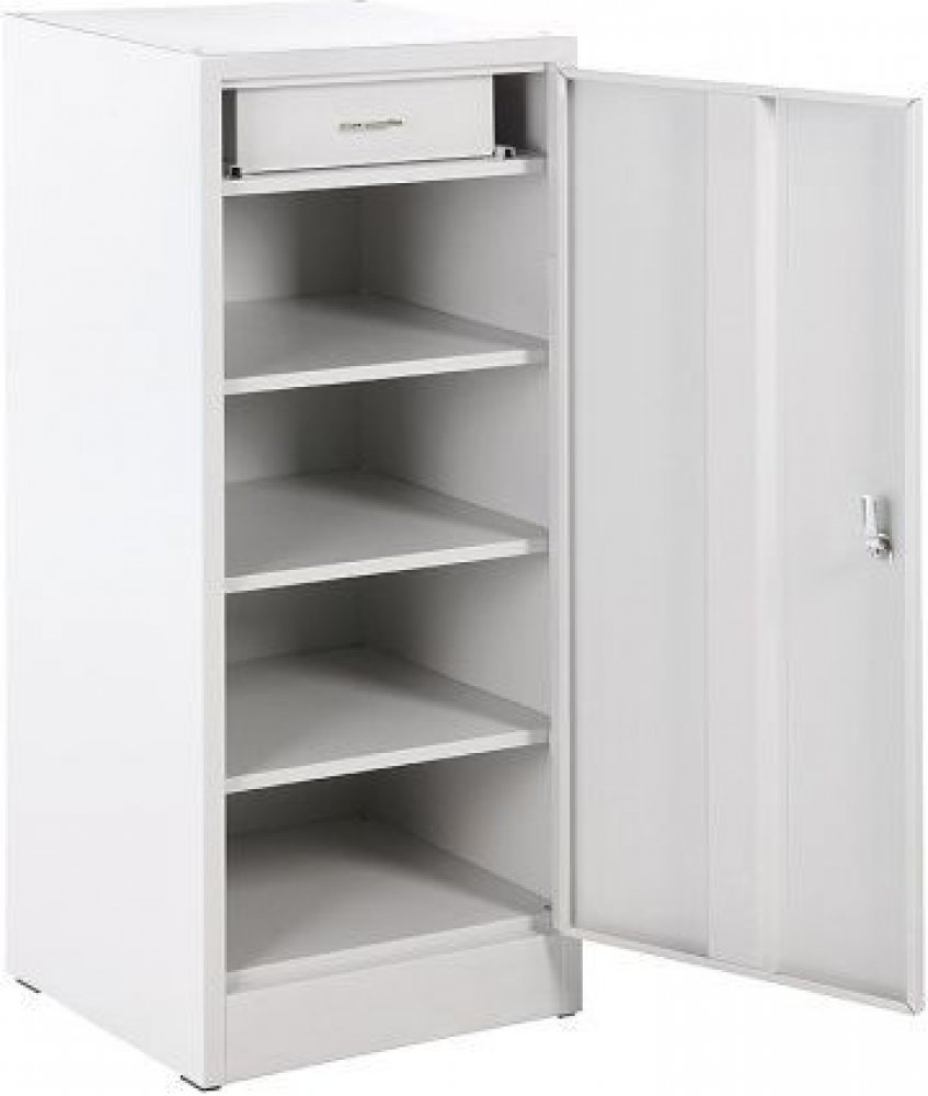Vyrobeno z oceli. Skříňky se vyznačují malými rozměry, svařovanou konstrukcí a vysokou odolností. Jednobodové zamykání dveří uprostřed s cylindrickým zámkem. Police jsou výškově stavitelné po 25 mm s maximálním zatížením 20 kg. Zásuvka je výškově přestavitelná po 25 mm uložena na kuličkových výsuvech.