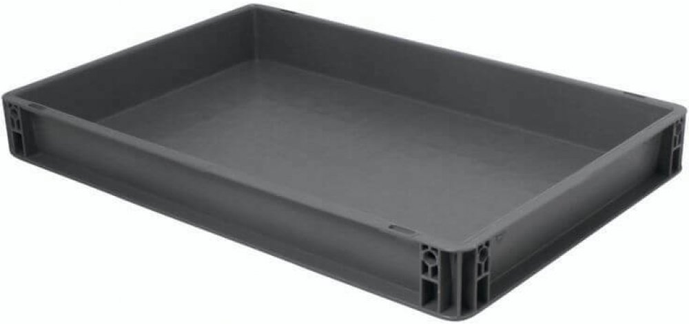 Nízká plastová EURO přepravka s rozměry 600*400*75 mm s plnými stěnami a dnem.