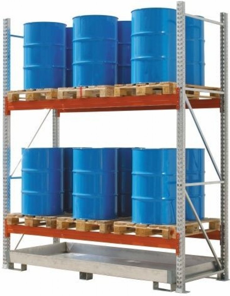 Vyrobeno z pozinkovaného plechu o tloušťce materiálu 3 mm. Záchytná vana slouží k odchytávání úniků kapalin z uskladněných sudů. Určeno k umístění pod regály – typ 3283/3284 a 3287/3288.