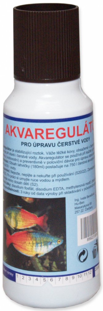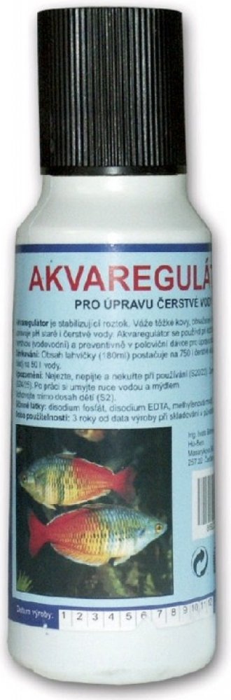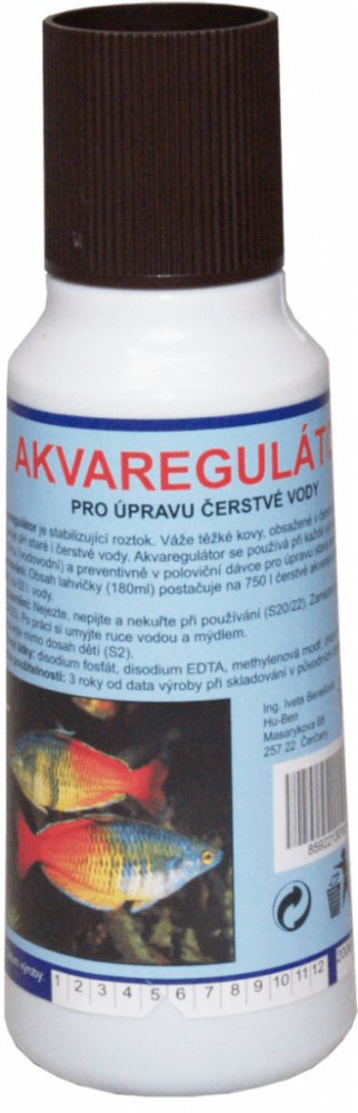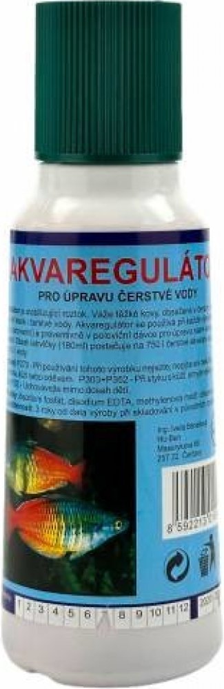 Akvaregulátor váže těžké kovy obsažené v čerstvé vodě a vhodně upravuje pH staré i čerstvé vody. Používá se při každé výměně akvarijní vody za čerstvou a preventivně v poloviční dávce pro úpravu staré akvarijní vody.
