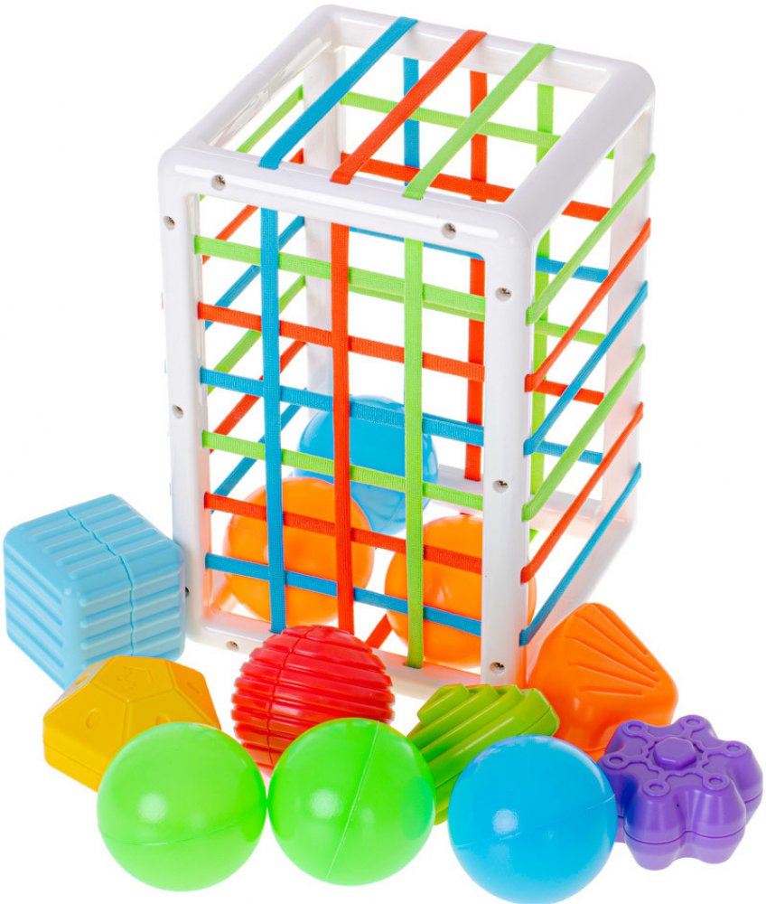 Jednoduchá hra pro malé děti v podobě obdélníku s barevnými gumičkami. Principem je vkládání kostek různých tvarů přes gumičky dovnitř obdélníku. Různé vzory budou stimulovat dětské prstíky a pozitivně ovlivní jejich citlivost a schopnost rozpoznávat tvary. Kontrastní, jasné a zřetelné barvy usnadňují učení rozpoznávání barev. Stahování gumiček, natahování, tlačení a ohýbání bude skvělým cvičením ...