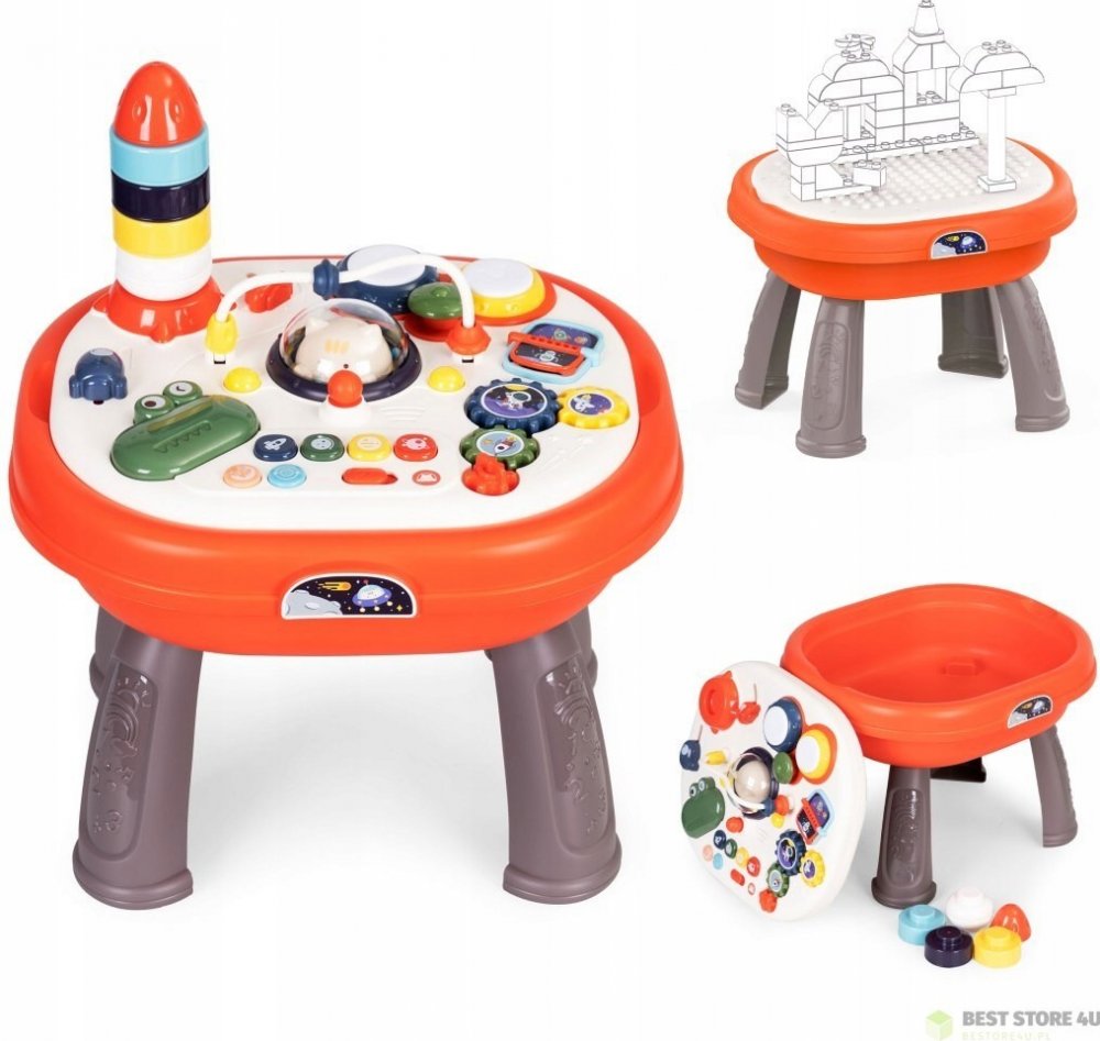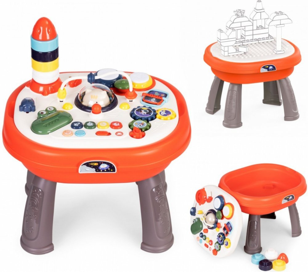 Kromě toho má tabulka také vesmírná raketa ze 6 velkých blokůkterý podporuje rozvíjení kreativity a představivost.