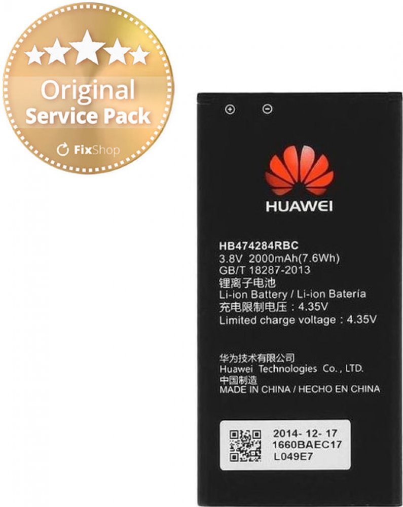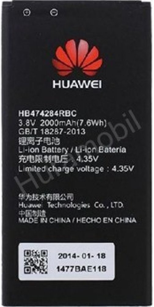 Originální baterie Huawei HB474284RBC s kapacitou 2000mAh je kompatibilní s mobilními telefony Huawei Ascend G620, Y635, Y5 (Y560). Baterie Huawei HB474284RBC nemá paměťový efekt a je chráněna proti přebití, přepólování a přehřátí.