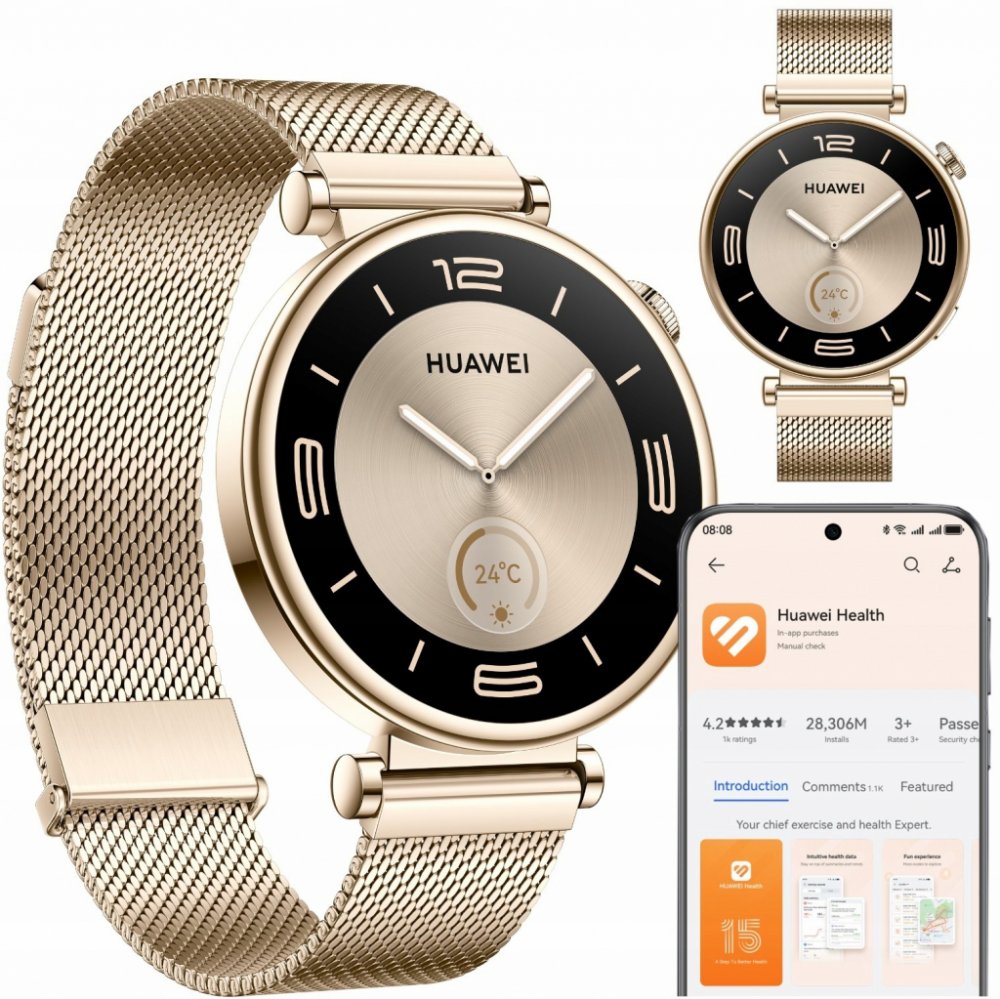 Huawei Huawei Watch GT 4 dámské 32 GB 1.32 palce AMOLED kulaté 466 x 466 px 37 g 41.3 mm 5.2 tlačítkové HarmonyOS nerezová ocel 5 dní 323 mAh Li-Ion