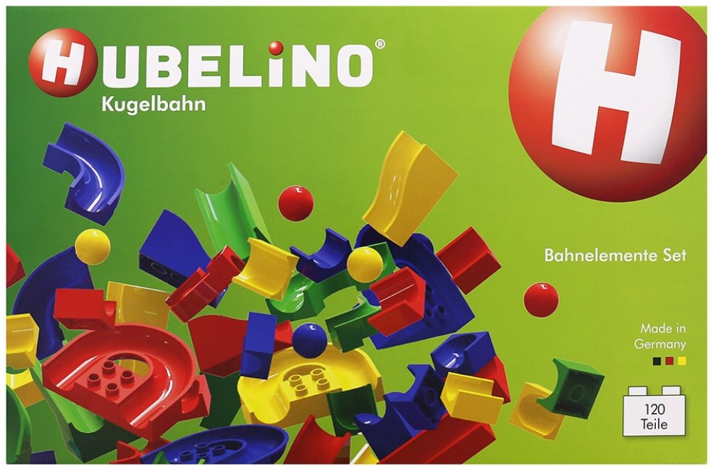Kuličková dráha HUBELINO je vyráběna v Německu z ekologicky šetrného materiálu. Poskytuje spousty zábavy a kreativity, podporuje logické myšlení i smysl pro detail. Dílky stavebnice jsou kompatibilní s kostkami LEGO Duplo. Vhodné pro děti od 3 let.