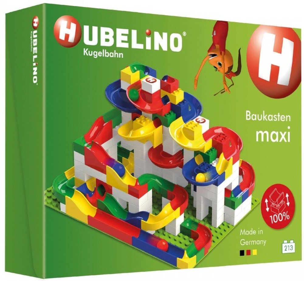 Kuličková dráha HUBELINO - Set s kostakmi Maxi je pro děti skvělým společníkem. Poskytuje spousty zábavy a kreativity, podporuje logické myšlení i smysl pro detail. Můžete si poskládat dráhu podle přiloženého návodu nebo svou vlastní, ve fantazii se meze nekladou.