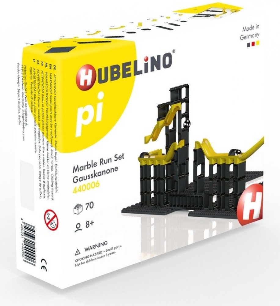 V sadě naleznete 70 stavebních kostek a kanón na střílení kuliček, ze kterých můžete poskládat dráhu podle návodu nebo zcela podle vlastní fantazie. Nový systém dráhy Hubelino Pi vyniká nápaditostí konstrukce a atraktivním designem.