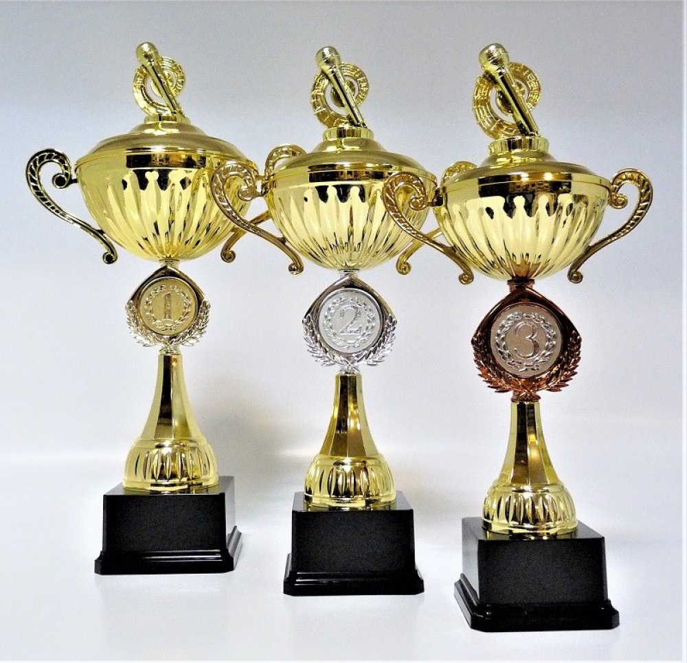 X41-P025. Poháry s pořadím viz. další foto. Výška pohárů včetně figurky je uvedena za lomítkem katalogového čísla. Průměr kalichů 16, 14, 12 cm. Při nákupu jedné sady (X41-P.../46/42/38cm)- text na štítky napište jen do rubriky "štítek na" např. O POHÁR PRIMÁTORA 10.10.2022 České Budějovice a do součtu štítků zadejte 3 !!! Ukázka možného zpracování štítku - viz.další foto. Pokud objednáváte ve vět...