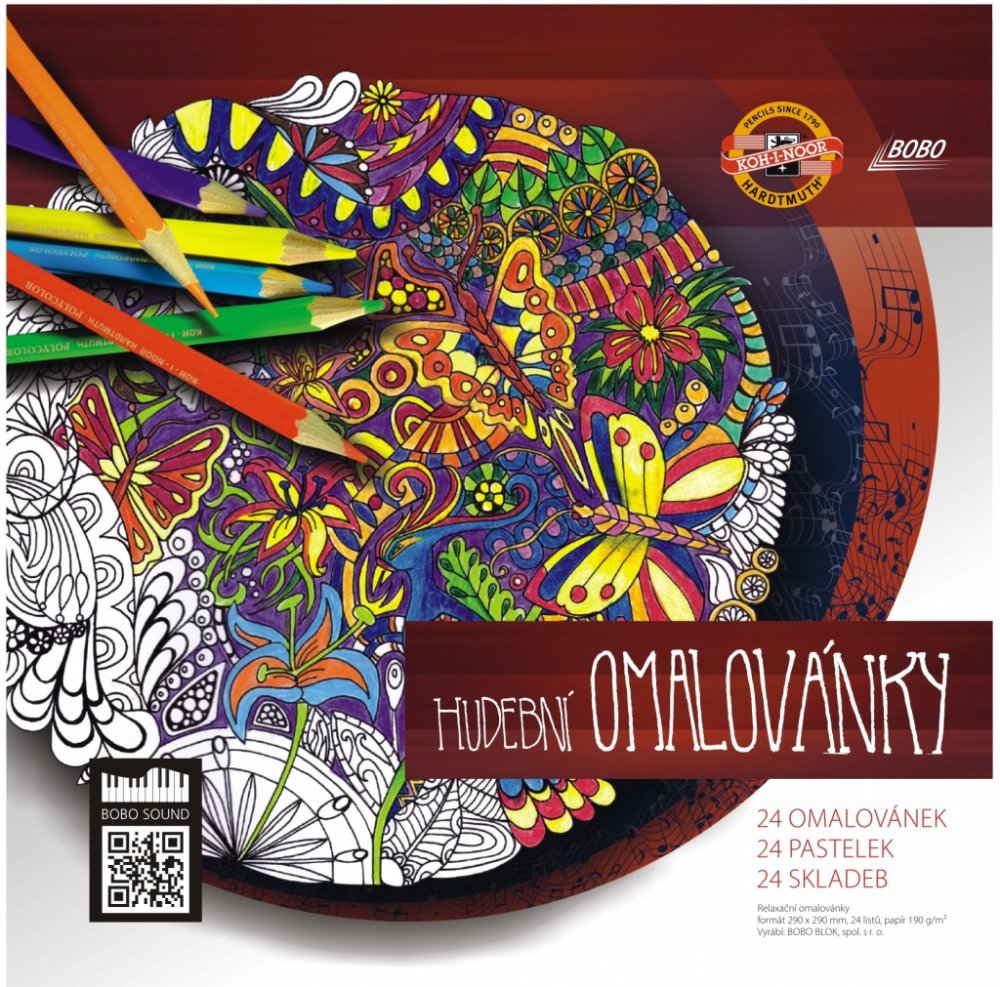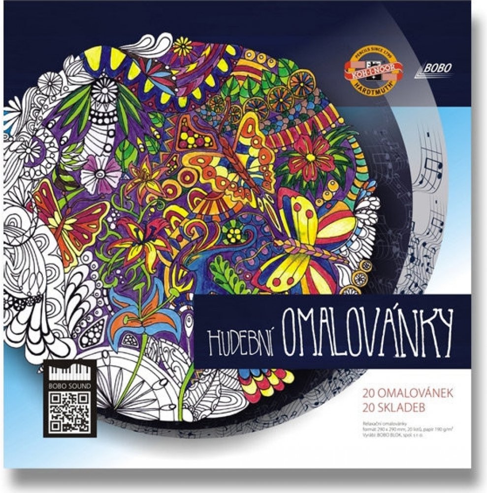 Hudební omalovánky pro dospělé obsahují 20 originálních relaxačních omalovánek od výtvarnice Jany Vlkové a 20 originálních skladeb od hudebníka Jana Černého.