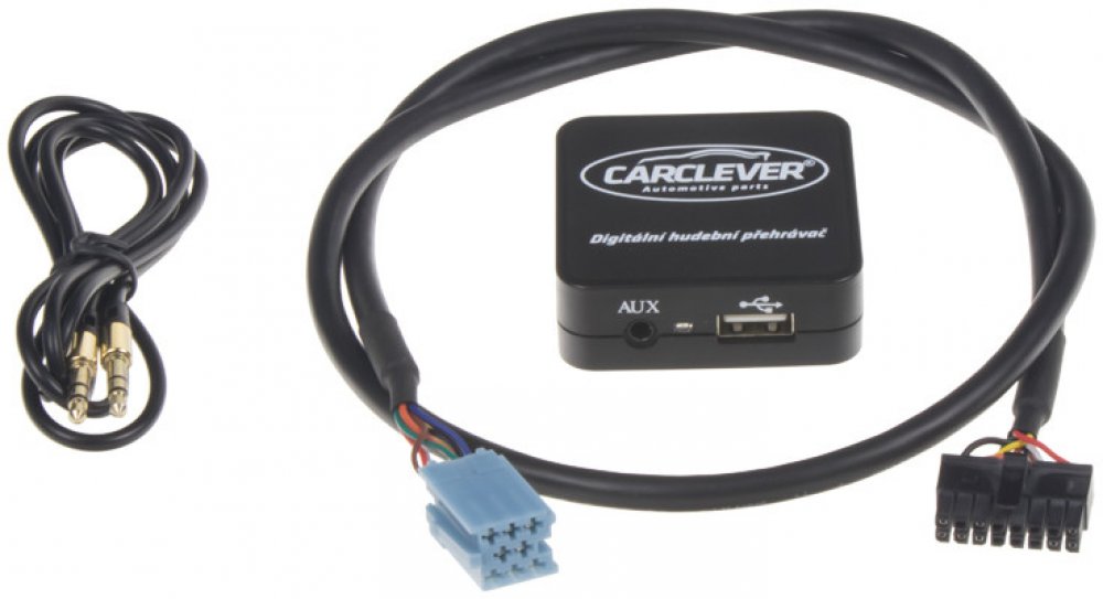 Digitální hudební přehrávač k autorádiím Renault s miniISO konektorem, umožňuje přehrávání hudby z USB / AUX přímo na originálním autorádiu.