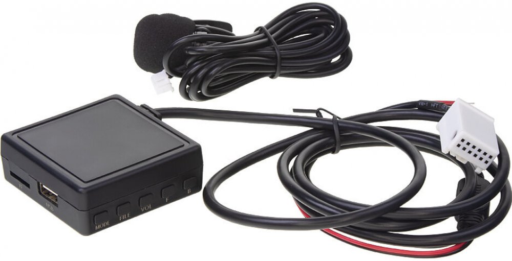 Digitální hudební přehrávač s Bluetooth k autorádiím VW, Škoda, Audi, Seat s 12-pinovým MOST konektorem, umožňuje přehrávání hudby z USB / AUX / Bluetooth přímo na originálním autorádiu.