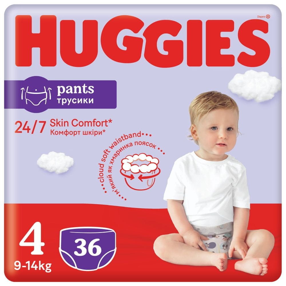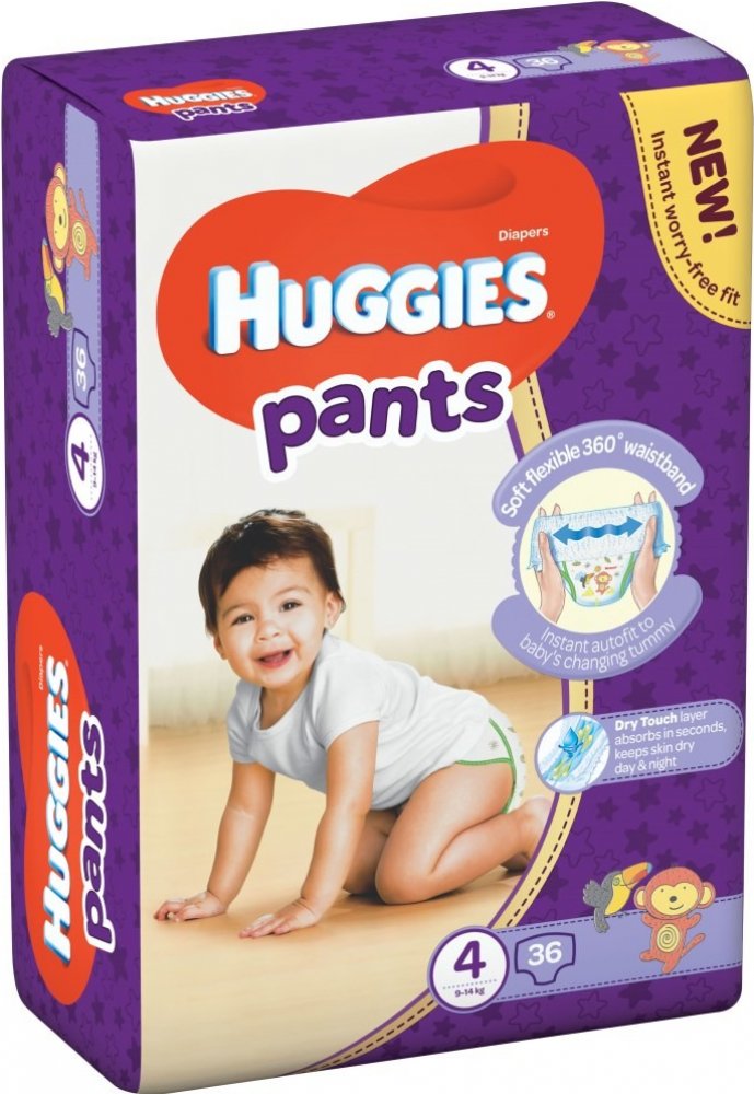 Plenkové kalhotky pro děti vážící 9-14 kg. Jsou alternativou k standardním jednorázovým plenám. Dry Touch vrstva, kterou plenkové kalhotky Huggies Pants obsahují, absorbuje vlhkost během několika vteřin a udržuje pokožku v suchu po celý den a noc. Mají měkký pružný pás, který se vždy přizpůsobí měnícímu se dětskému bříšku. Měkké elastické manžetky kolem nožiček zajistí extra ochranu proti protečení, jemně přiléhají a dítko neomezují. Plenkové kalhotky zkrátka skvěle padnou po celém obvodě. Indikátor vlhkosti změní barvu, pokud je plenka mokrá, nicméně měkké materiály s mikropóry odvádějí vlhkost a pokožka zůstane v suchu a může dýchat. Oblékají se velmi jednoduše - jako opravdové spodní prádlo. Ještě snadněji se svlékají - boky se jednoduše roztrhnou. Snadná likvidace - plenka se sroluje a zajistí upevňující páskou.