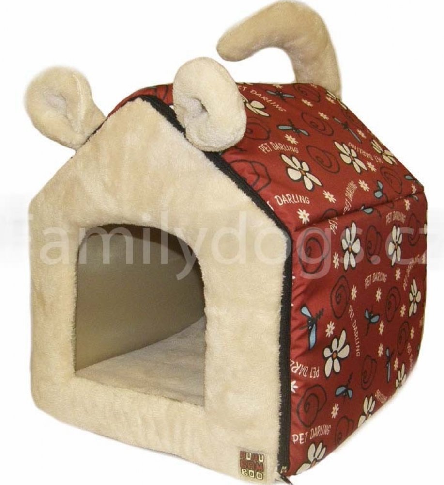 Bouda HUHUBAMBOO bordó x béžová, velikost 35 x 35 x 30 cm
